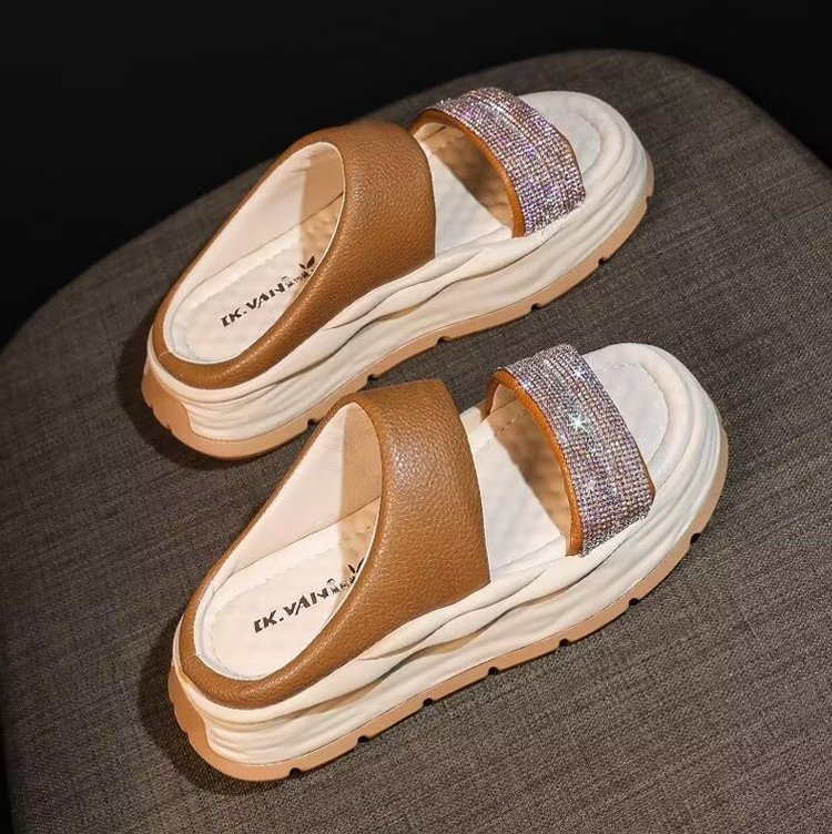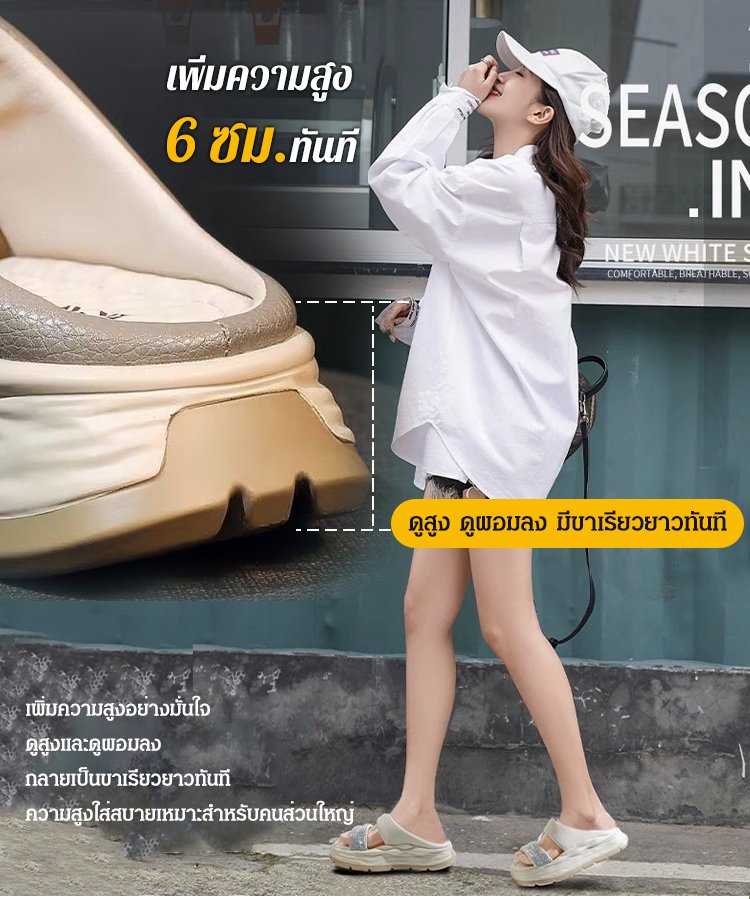 รองเท้าแตะเพิ่มความสูงติดเพชรกระพริบ