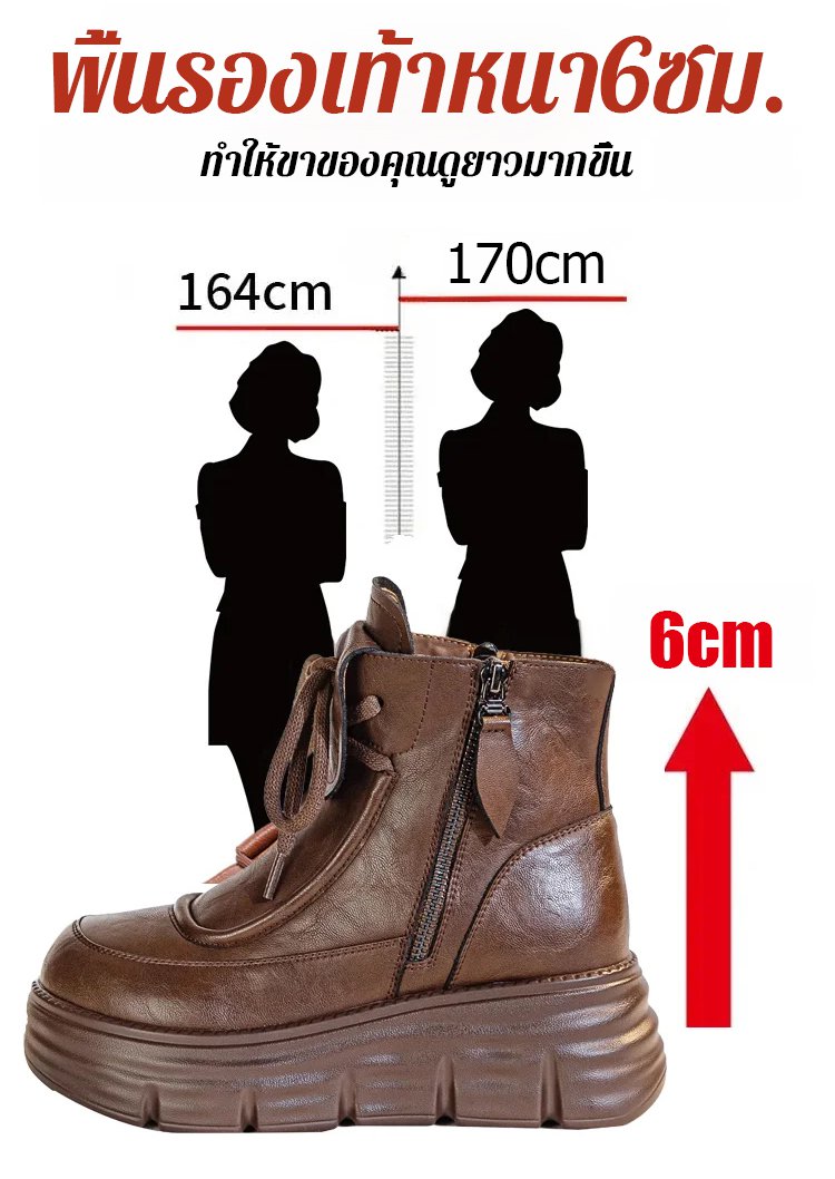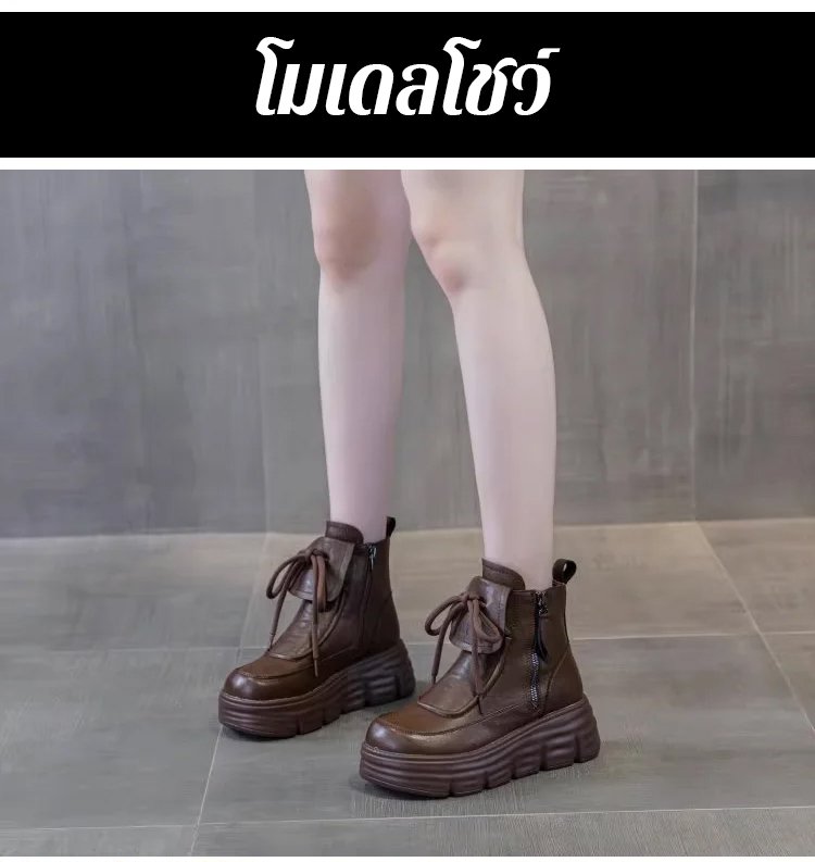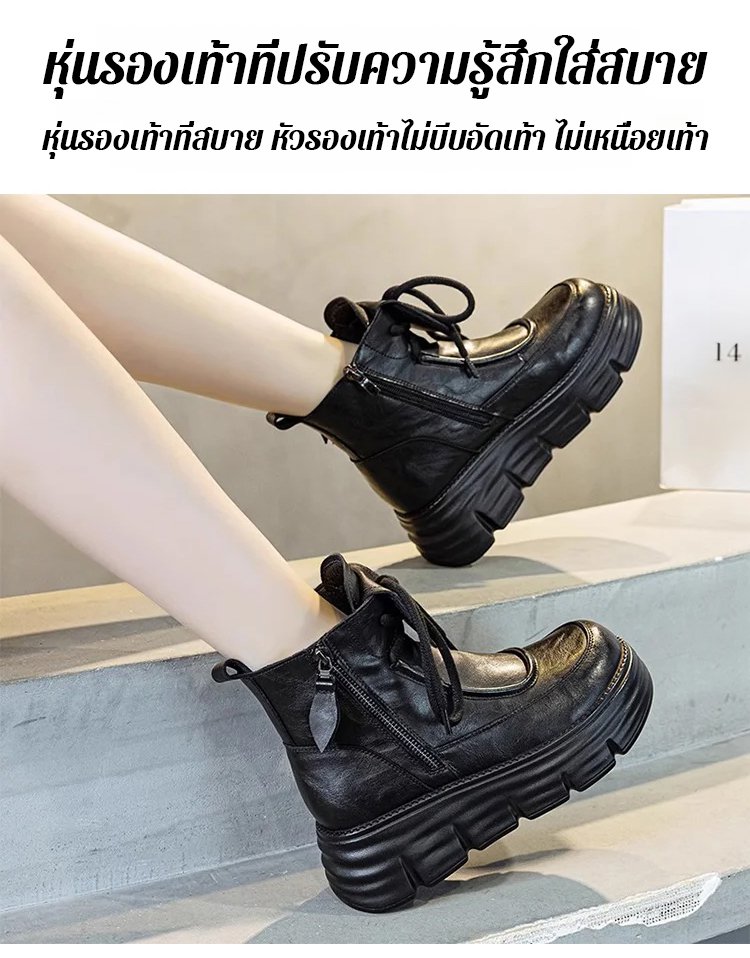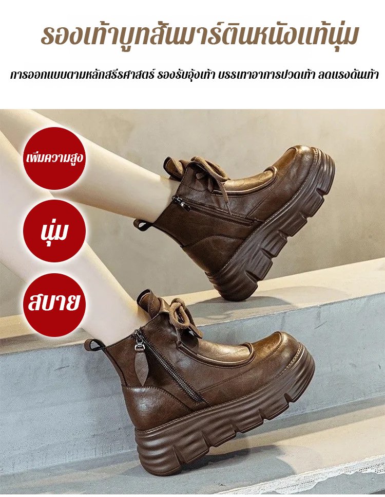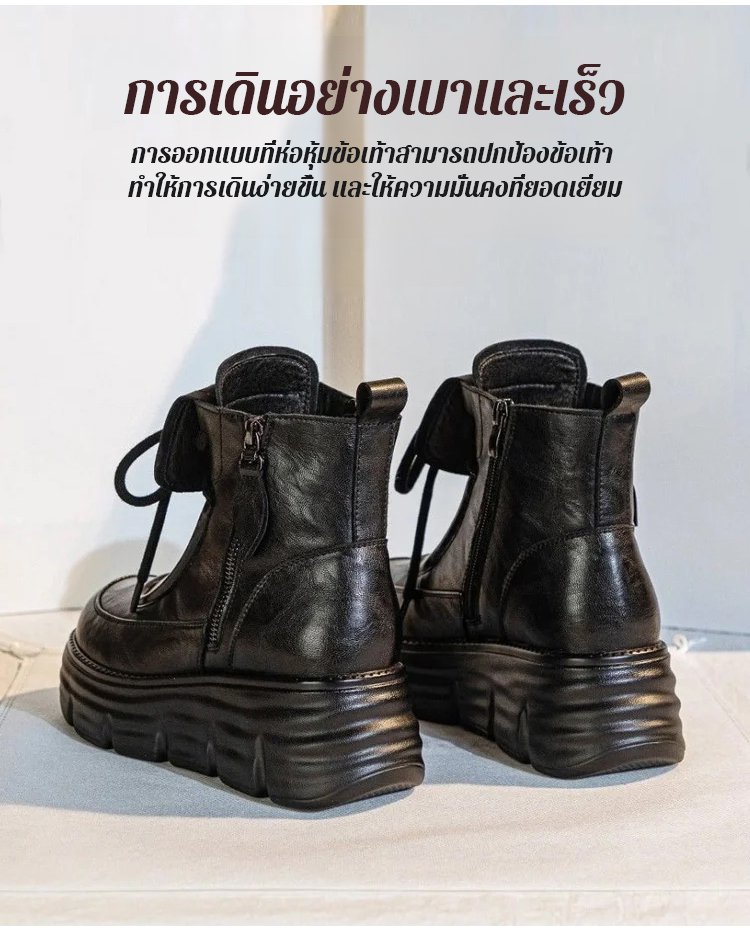 รองเท้าบูทมาร์ตินหนังนุ่ม บุขนด้านใน