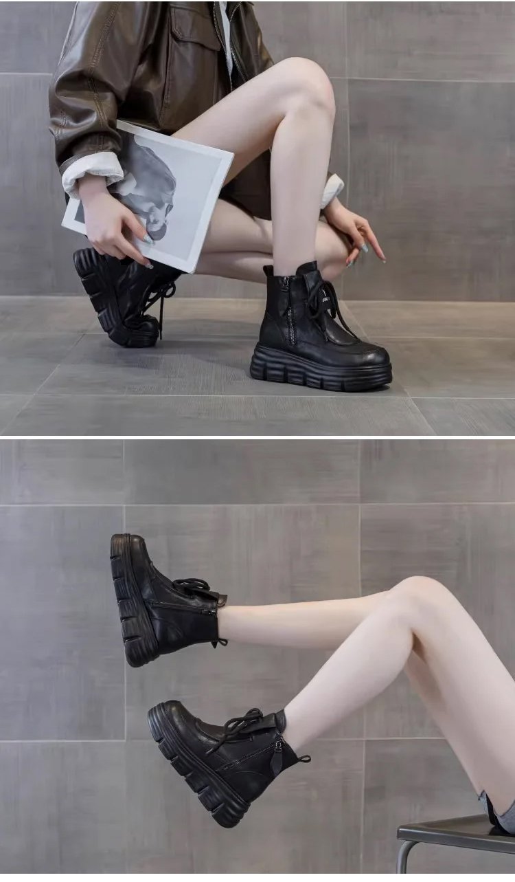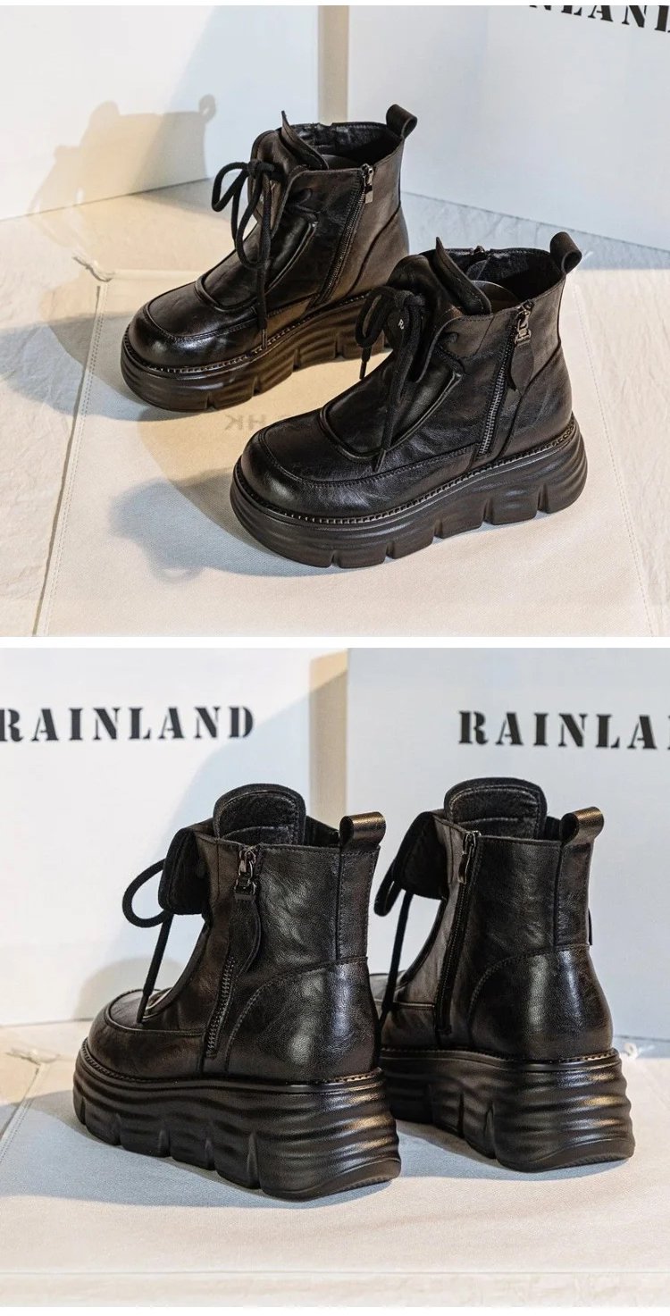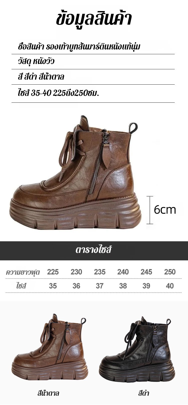 รองเท้าบูทมาร์ตินหนังนุ่ม บุขนด้านใน